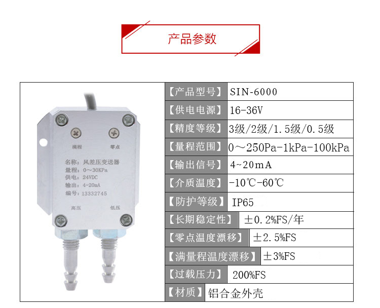 差壓變送器采用了高性能 SMI 硅壓阻式壓力芯片為 敏感核心,外殼為合金鋁,內部的專用集成電路將傳感 器毫伏信號轉換成標準電流信號,可以直接與計算機接 口卡、控制儀表、智能儀表或 PLC 等方便相連。運距離 傳輸可以采用電流輸出方式。廣泛應用于鍋爐送風、井 下通風等電力、煤炭行業過程控制領域。