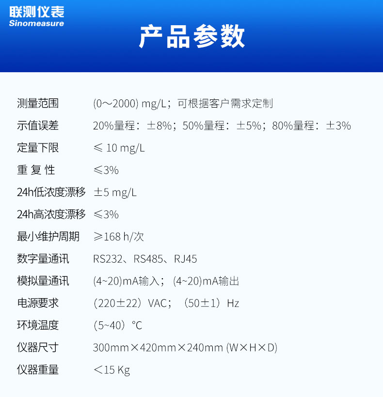 COD水質在線分析儀采用重鉻酸鹽法檢測,符合《化學需氧量(CODCr)水質在線自動監測儀技術要求及檢測方法》(HJ 377)、《水質 化學需氧量的測定 重鉻酸鹽法》(HJ 828)和《水質化學需氧量的測定 快速消解分光光度法》(HJ/T 399)、《污染物在線自動監控(監測)系統數據傳輸標準》(HJ 212)、《地表水自動監測儀器通信協議技術規定》等標準和規范的要求。