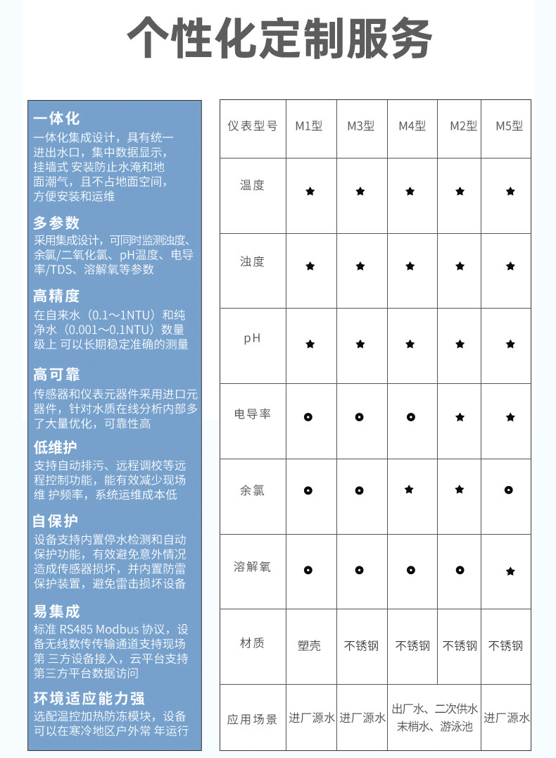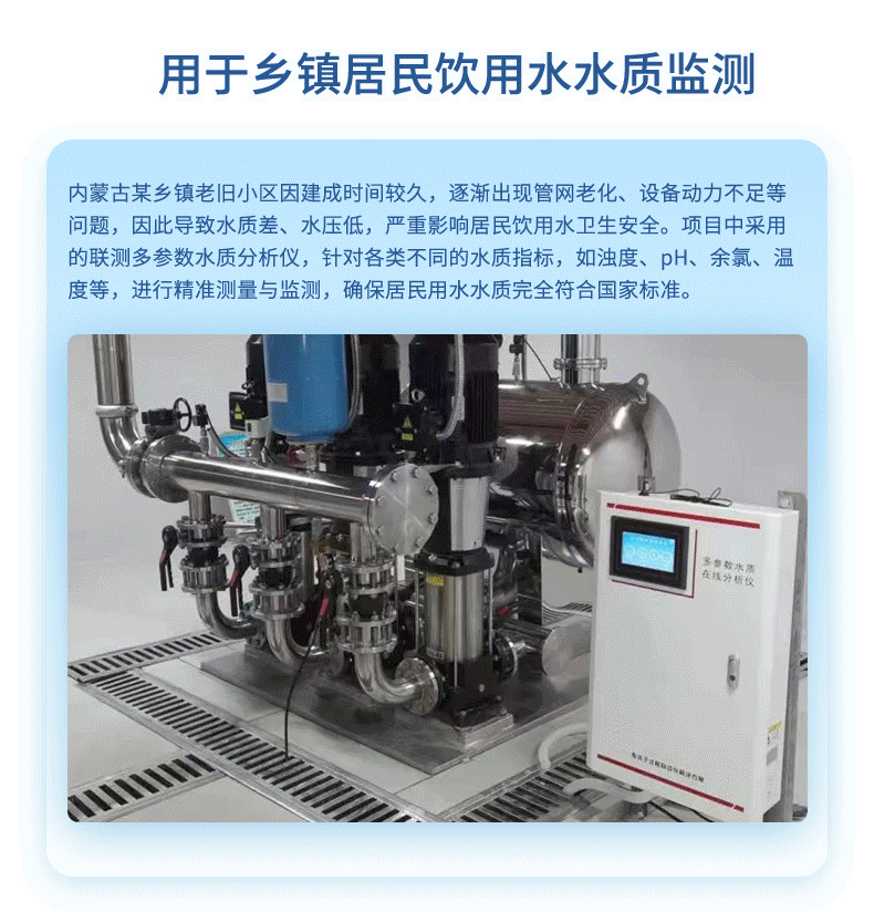 多參數水質在線分析儀是本公司自主研發制造的新一代飲用水水質監測設備,該設備可廣泛用于城市或村鎮自來水廠、自來水輸水管網、自來水二次供水、用戶末梢、室內游泳池、大型凈水設備和直飲水等水質在線監測,是水廠生產過程控制、水利水務管理、衛生監督等領域必不可少的在線分析設備。CN3