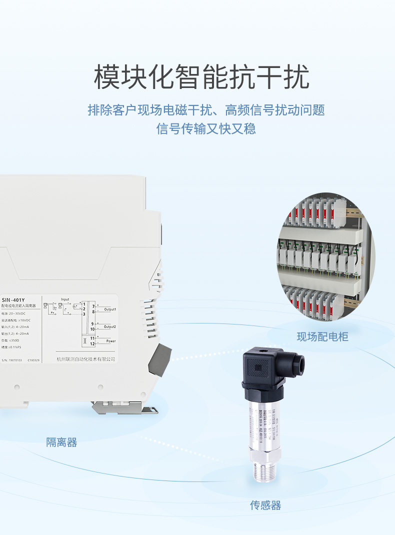 信號隔離器是一種信號隔離裝置,將輸入單路或雙路電流或電壓信號,變送輸出隔離的單路或雙路線性的電流或電壓信號,并提高輸入、輸出、電源之間的電氣隔離性能。