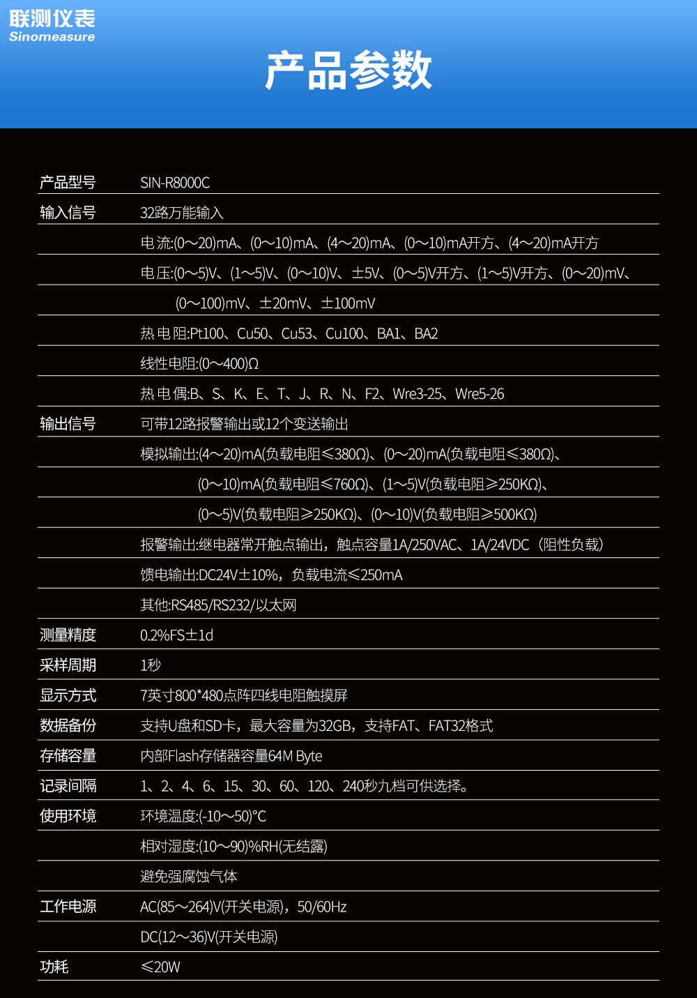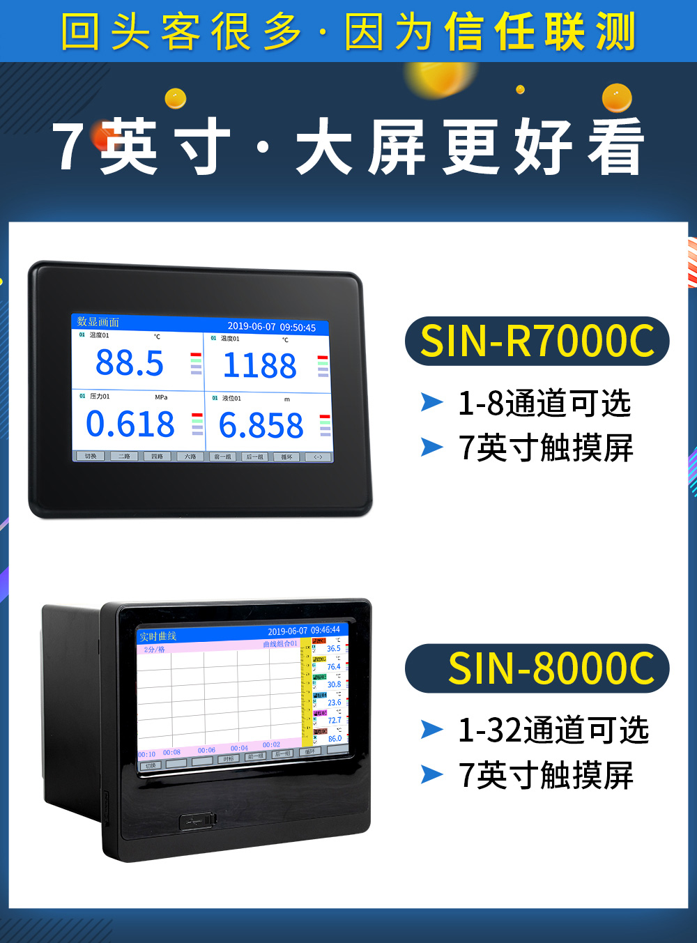聯測_SIN-R8000C_(觸摸屏)1-32路可選_7英寸無紙記錄儀_溫度_壓力_多種參數