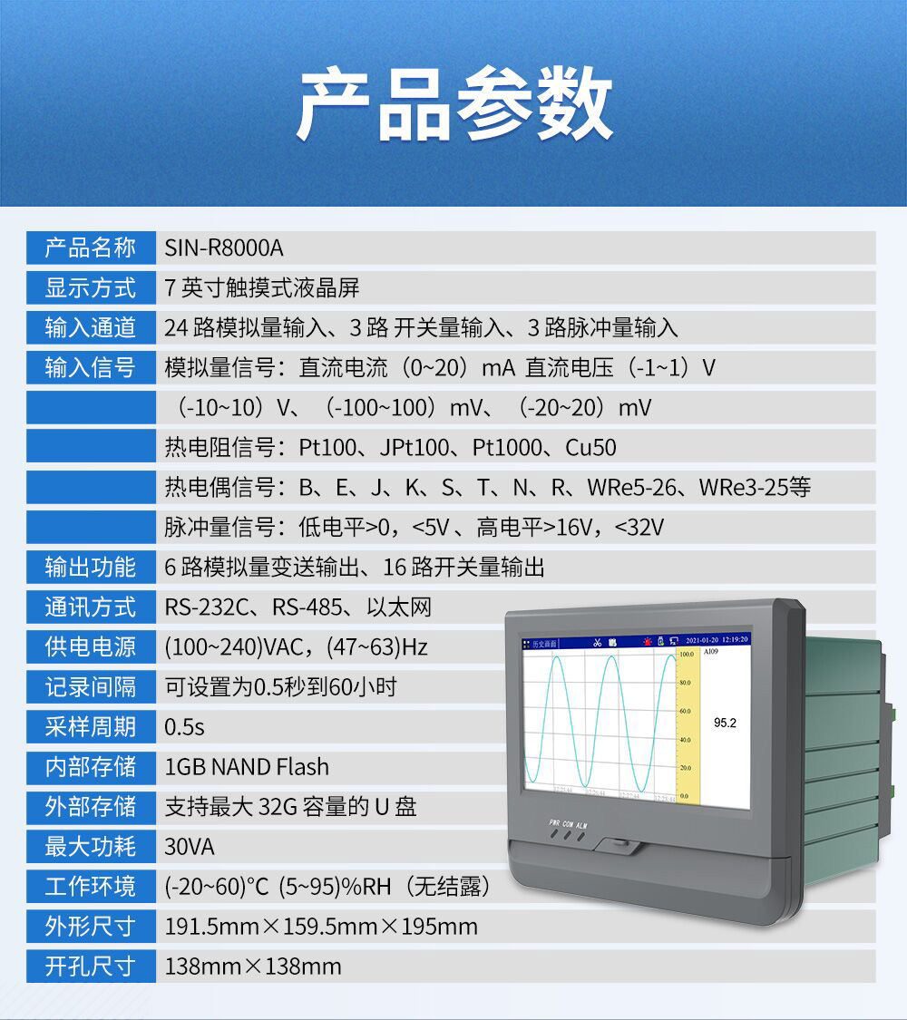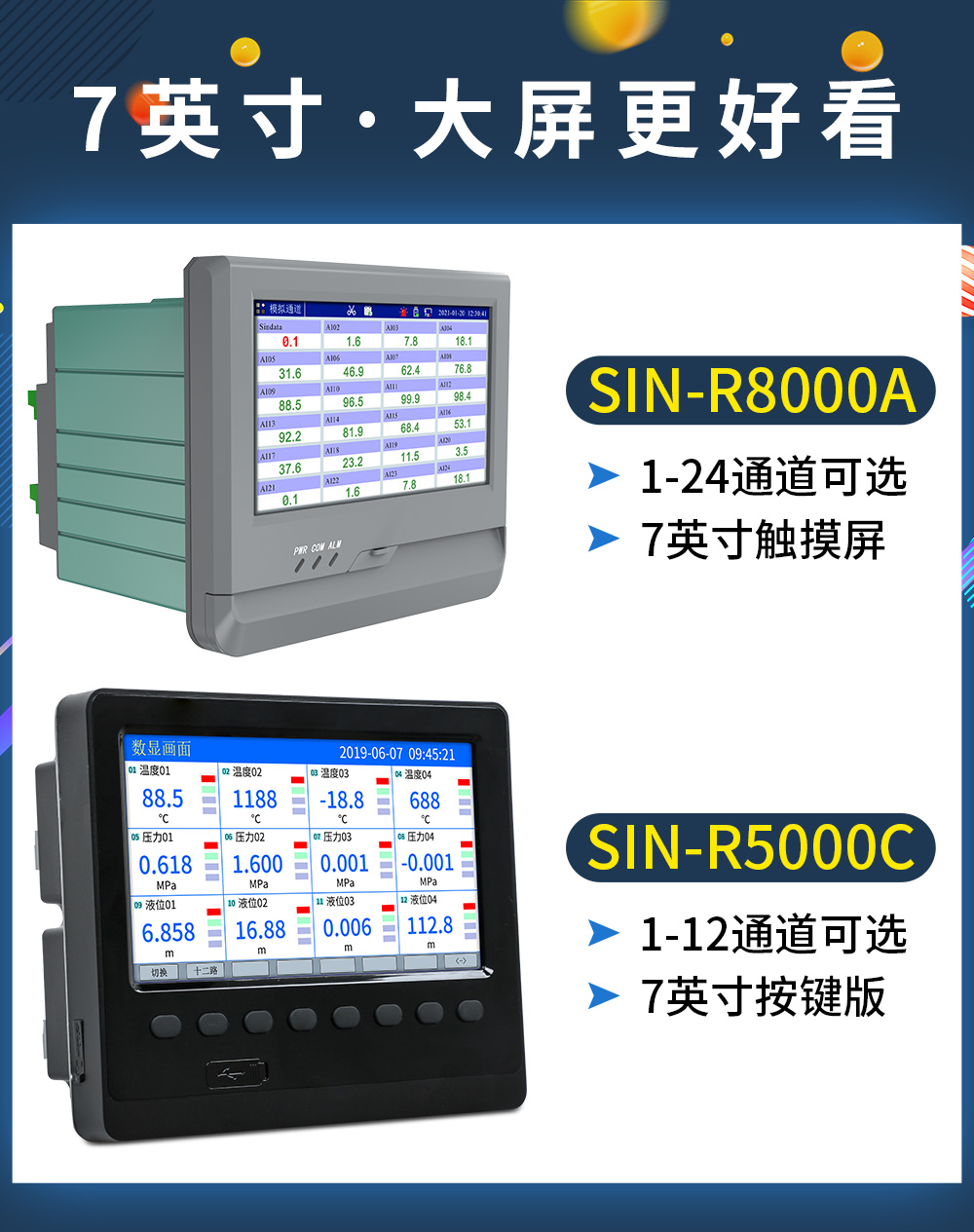 聯(lián)測_SIN-R8000A_(觸摸屏)0.5S高速采集_1-24路可選_7英寸無紙記錄儀__溫度_壓力_多種參數(shù)