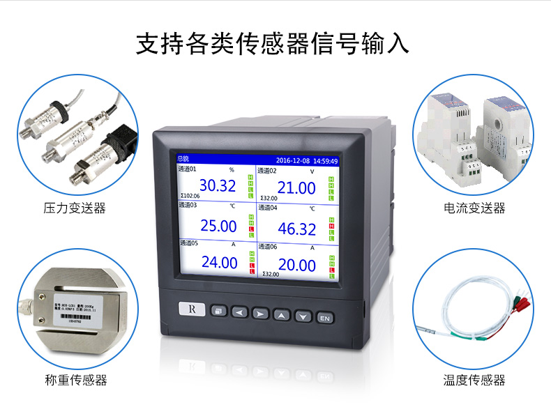 SIN-R6000D系列無紙記錄儀是一種高速高性能微處理器和5.6英寸彩色液晶顯示屏,對現(xiàn)場各種溫度、壓力、流量、電量等信號實(shí)現(xiàn)監(jiān)測、控制和記錄功能。 SIN-R6000D系列無紙記錄儀可自由組態(tài)輸入標(biāo)準(zhǔn)電流、標(biāo)準(zhǔn)電壓、熱電偶、熱電阻、頻率等信號,可實(shí)現(xiàn)為傳感器配電和繼電器報(bào)警輸出,并且可通過U盤或通訊方式與上位機(jī)進(jìn)行數(shù)據(jù)交換。CN3