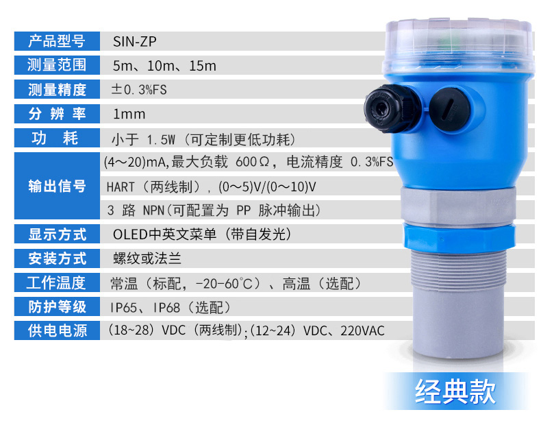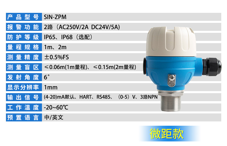 當前位置: 首頁 > 超聲波液位計 → 聯(lián)測_SIN-ZP_0.3%精度_超聲波液位計_罐體專用/小盲區(qū)專用_