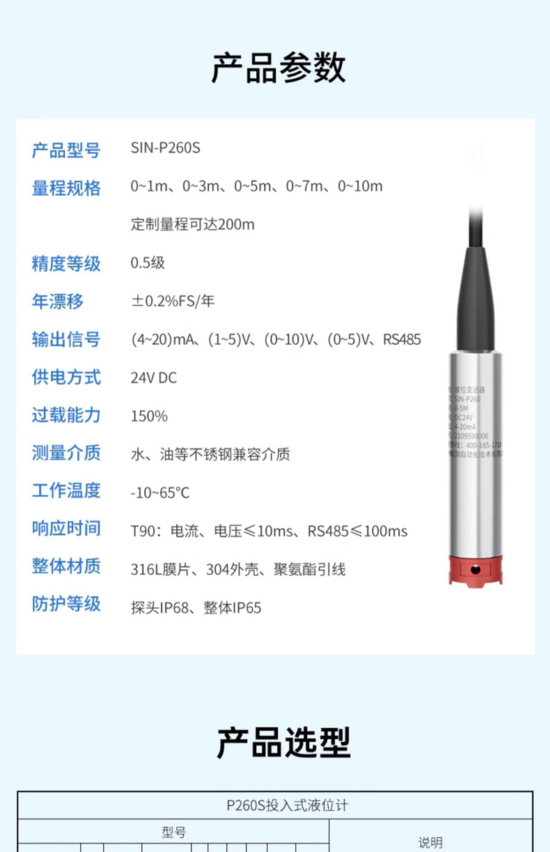 聯(lián)測(cè)_SIN-P260S新款投入式液位計(jì)/水位計(jì)_