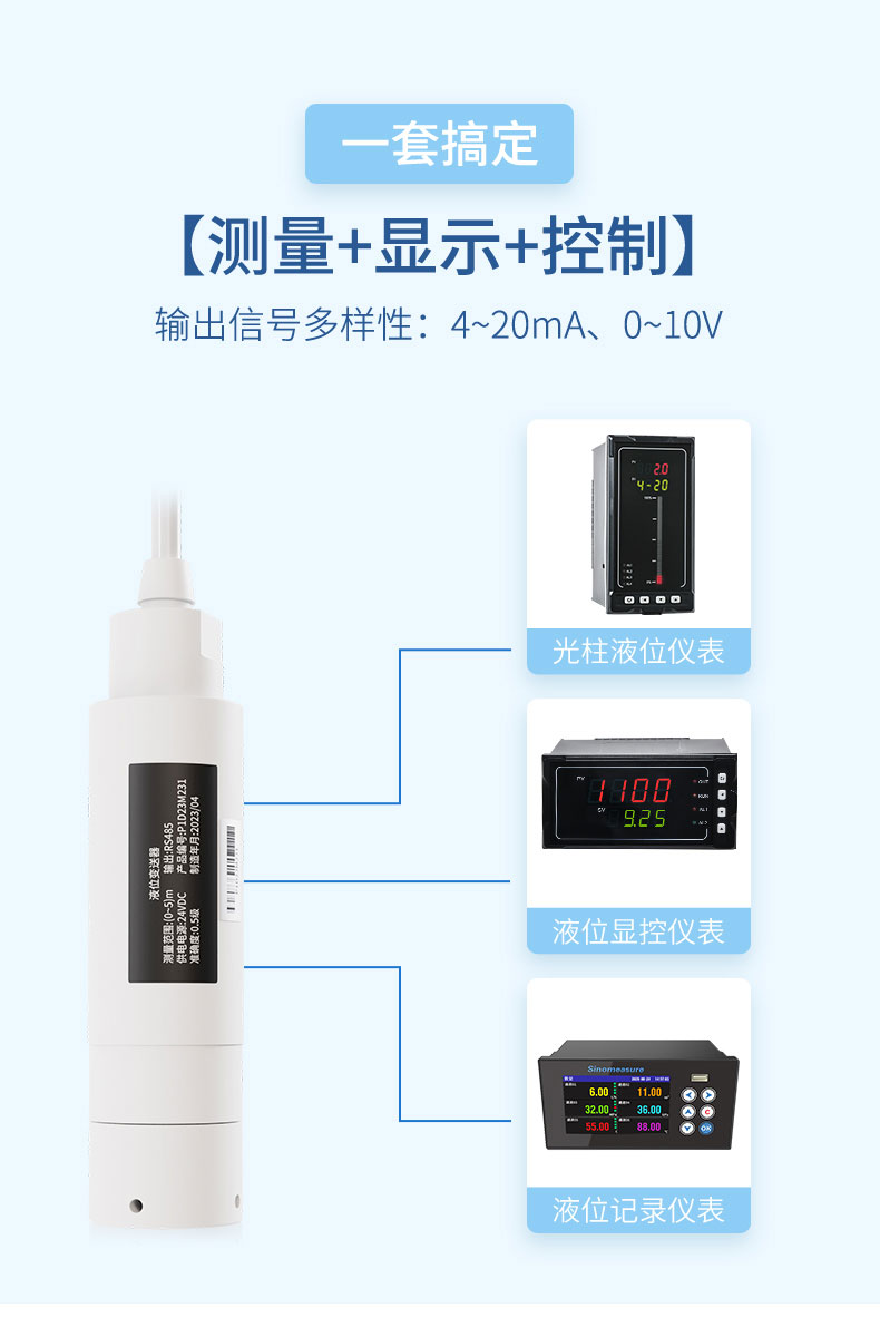 防腐投入式液位變送器由高性能陶瓷壓力傳感器作為測(cè)量元件,把與液位深度成正比的液體靜壓力準(zhǔn)確的測(cè)量出來(lái),并經(jīng)過(guò)信號(hào)調(diào)理電路轉(zhuǎn)換成標(biāo)準(zhǔn)的電流、電壓或 RS485 信號(hào)輸出,建立起輸出信號(hào)與液位深度的線性對(duì)應(yīng)關(guān)系,實(shí)現(xiàn)對(duì)液體深度的測(cè)量。產(chǎn)品采用聚四氟乙烯防腐材質(zhì),具有優(yōu)良的耐腐蝕性能,廣泛適用于化工廠酸、堿性等腐蝕介質(zhì)的液位測(cè)量。CN1