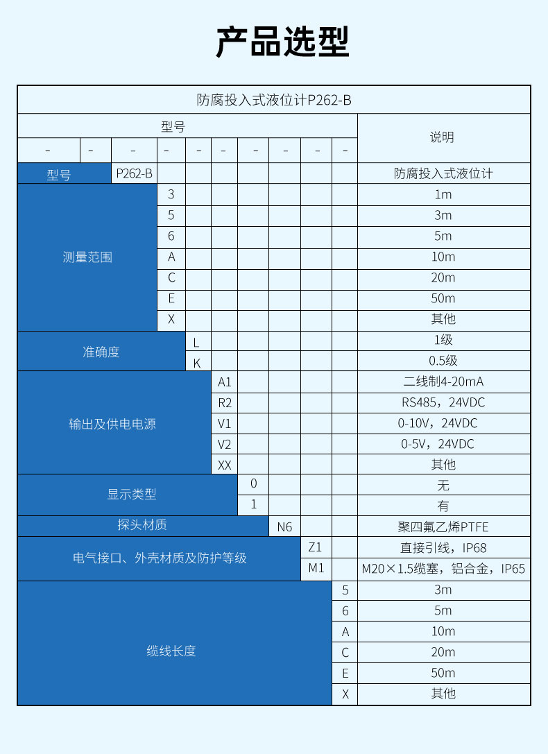 聯(lián)測(cè)_P262/P262-B防腐投入式液位計(jì)/水位計(jì)_陶瓷芯體_