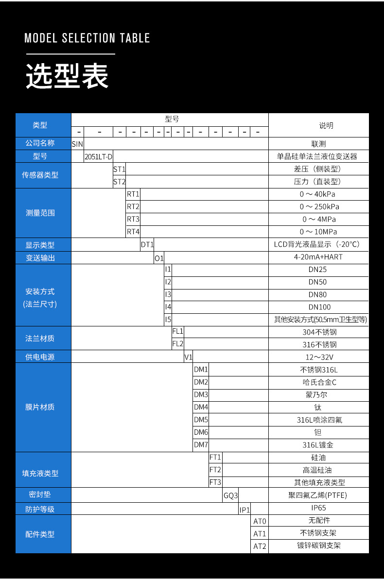 • 聯測_SIN-2051LT-D單晶硅單法蘭液位變送器 敞口罐 液體 _